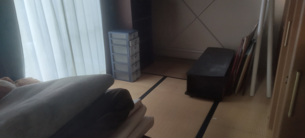 ご家族での引っ越しにあたり、不要となった家具や日用品の処分を目的としてご依頼いただきました。作業は戸建て住宅の2階で実施し、布団・テレビ台・収納ケース・スチールラックを回収しました。