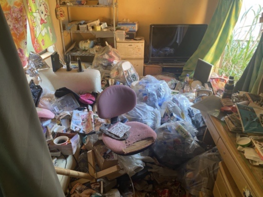 お部屋は床が見えない状態でしたが、まず分別で作業スペースを確保しました。途中から分担制で効率化し、家具は慎重に搬出しています。近隣に目立たない配慮も行い、テレビと台はご希望で残置。仕上がりを見たお客様に安堵いただけました。