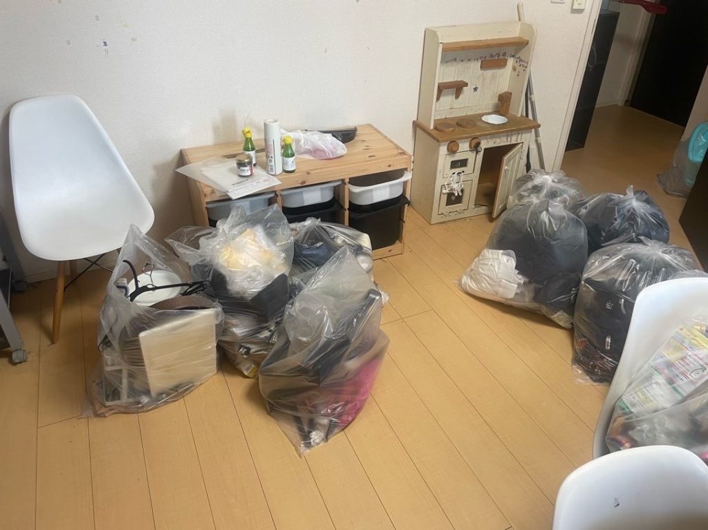 お客様は家財整理を進めるなかで、ゴミの分別が負担となり作業を進められず悩んでおられました。今回は椅子・テーブル・棚・おもちゃのキッチンなどを搬出し、まとめられていたゴミ袋はスタッフが丁寧に分別しました。